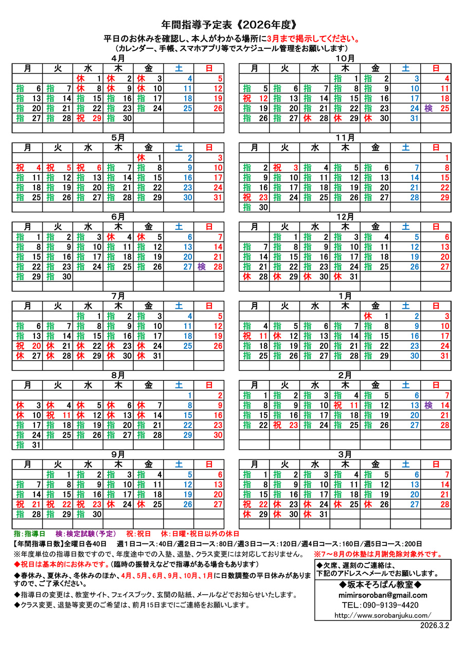 【2026年度指導予定表】