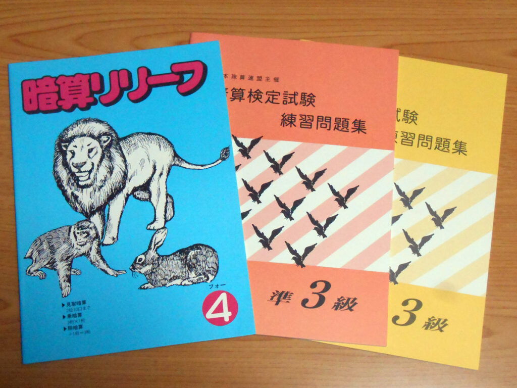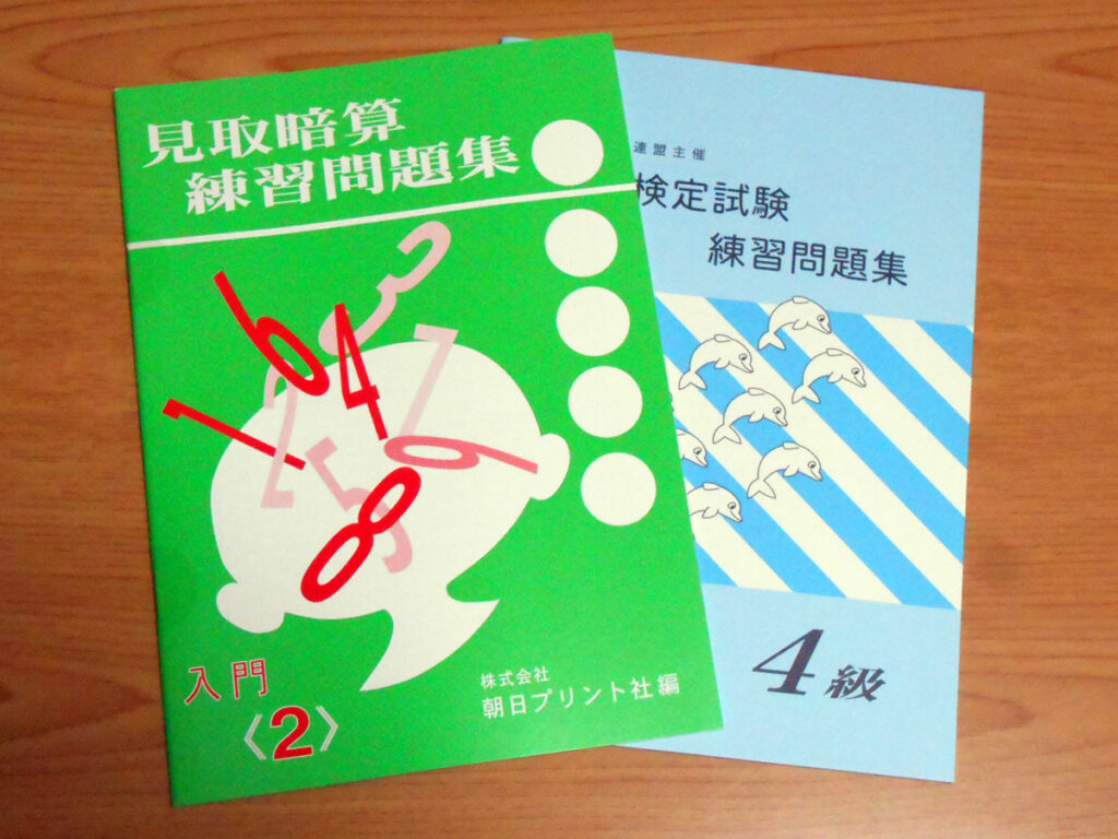 各種目4分ずつでやり、かけ算とわり算は120点以上、見取暗算は160点以上で合格です。